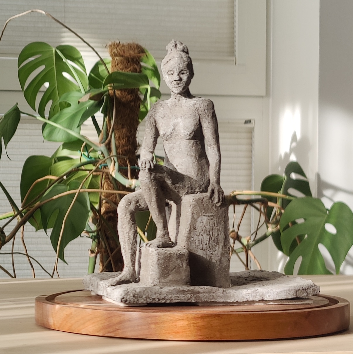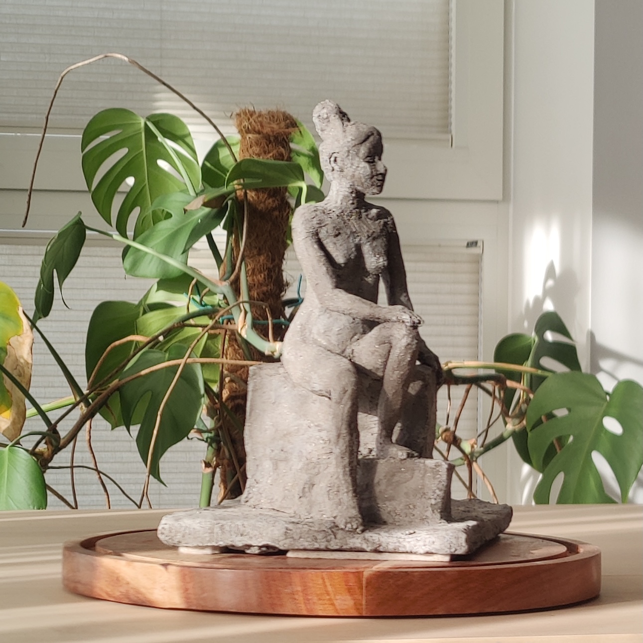 the rear of the large square base was intended to be a placement for a trough to hold plants; alas time was too short so focus was given to the main sculpture.